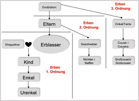 Sie merken, spätestens jetzt bekommt man einen Knoten im Gehirn vom Hinterherdenken, daher eine kleine Grafik, um die Ordnung der Erben zu verdeutlichen: